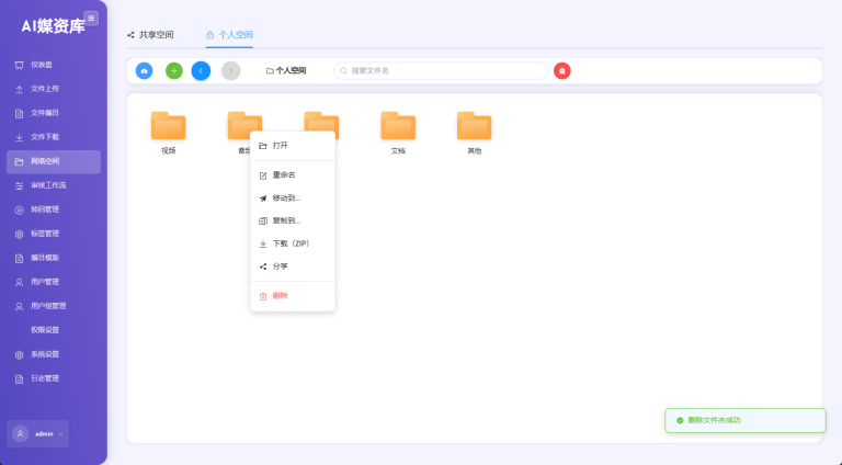 权限控制:通过用户、功能、目录三级授权体系,严格管控资源操作权限。